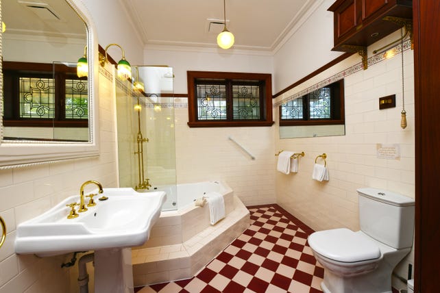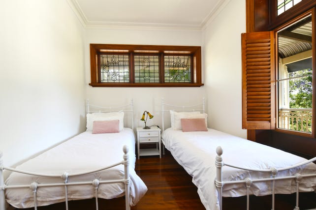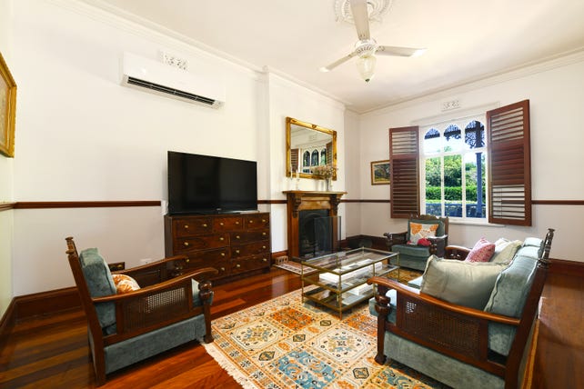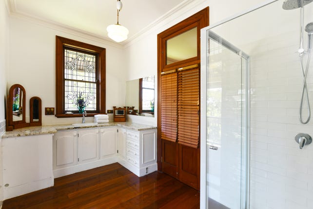 • Very spacious living area, polished hardwood floors and period high ceilings featuring rosettes and fans throughout