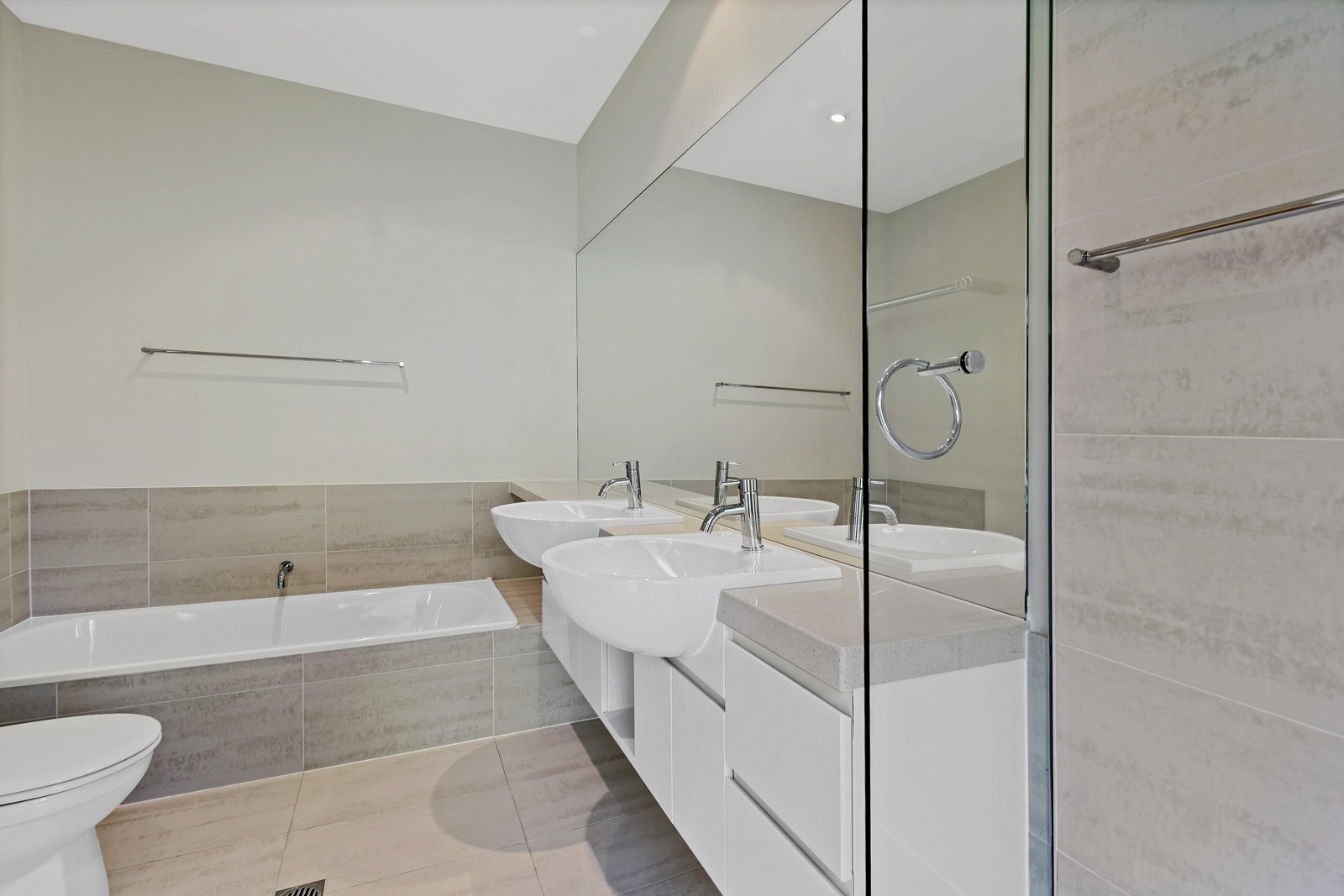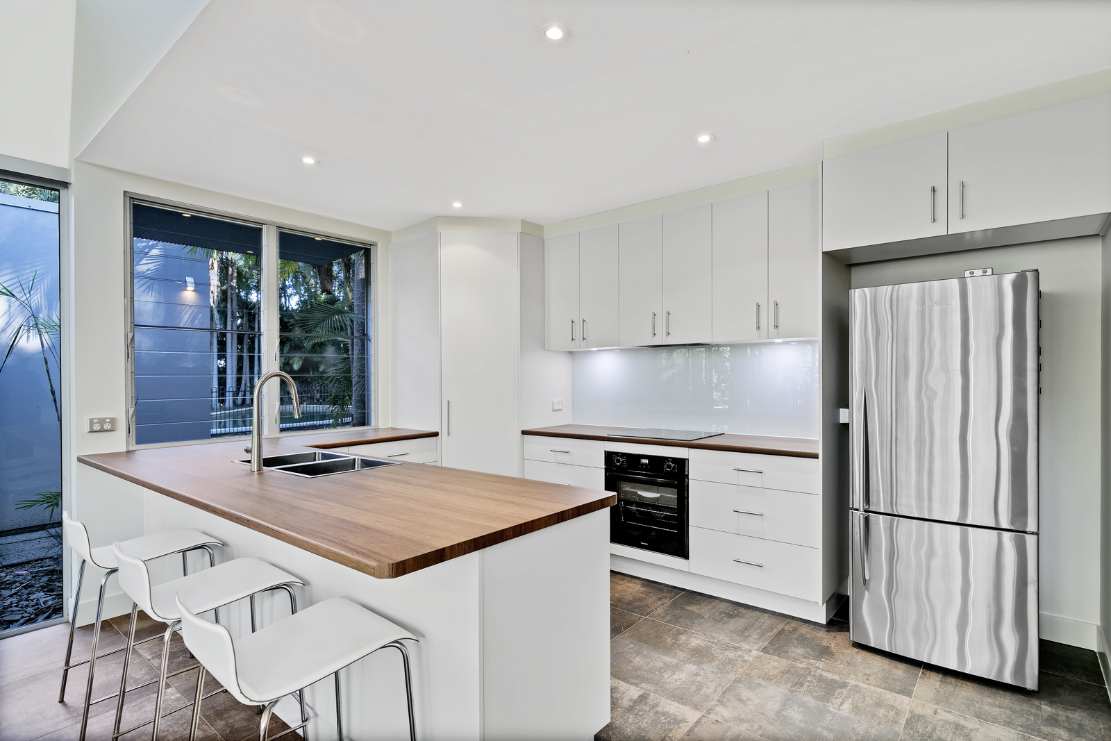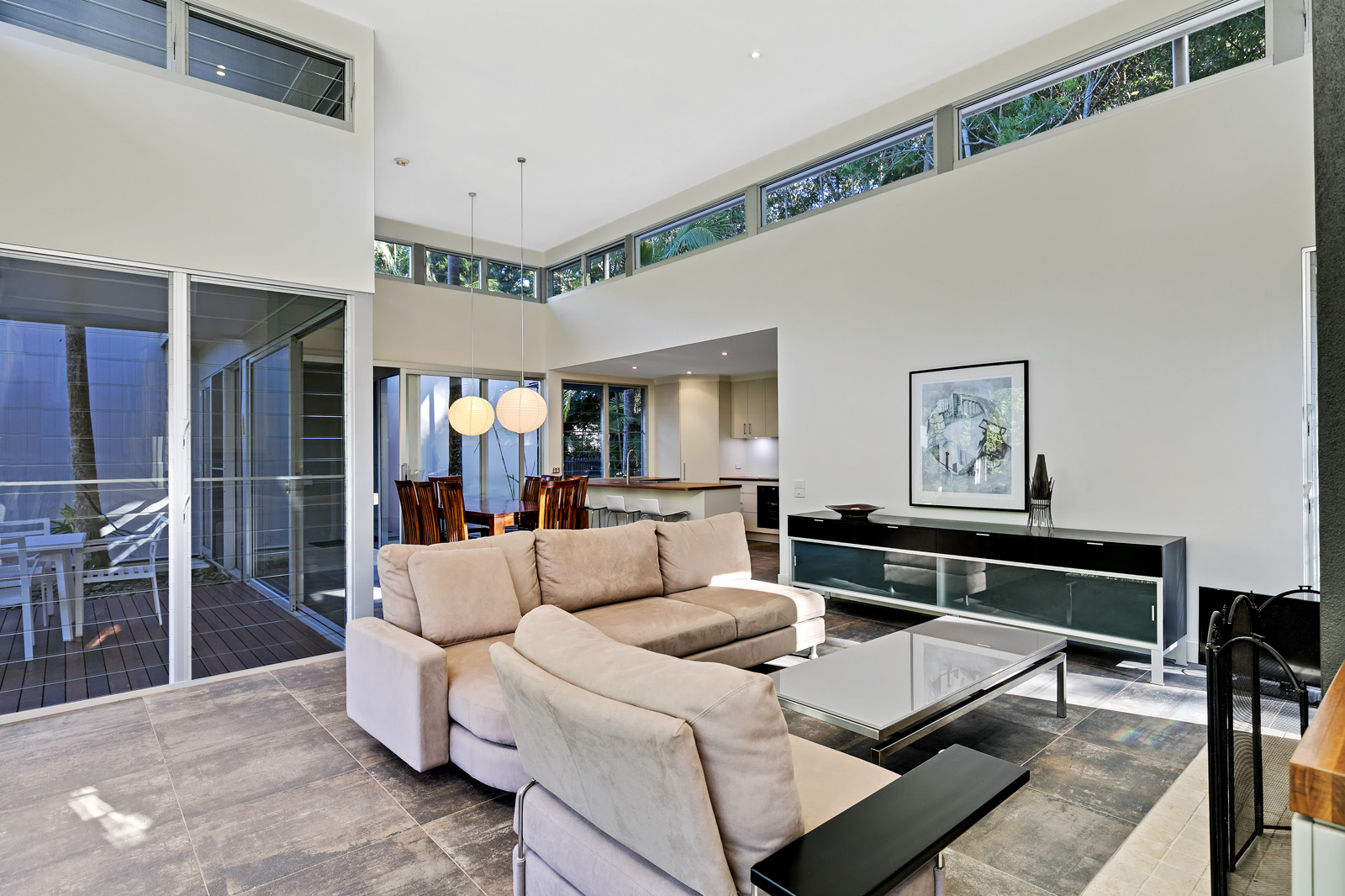 The heart of the home offers a combined kitchen, dining & living area with lots of natural light from high set windows.